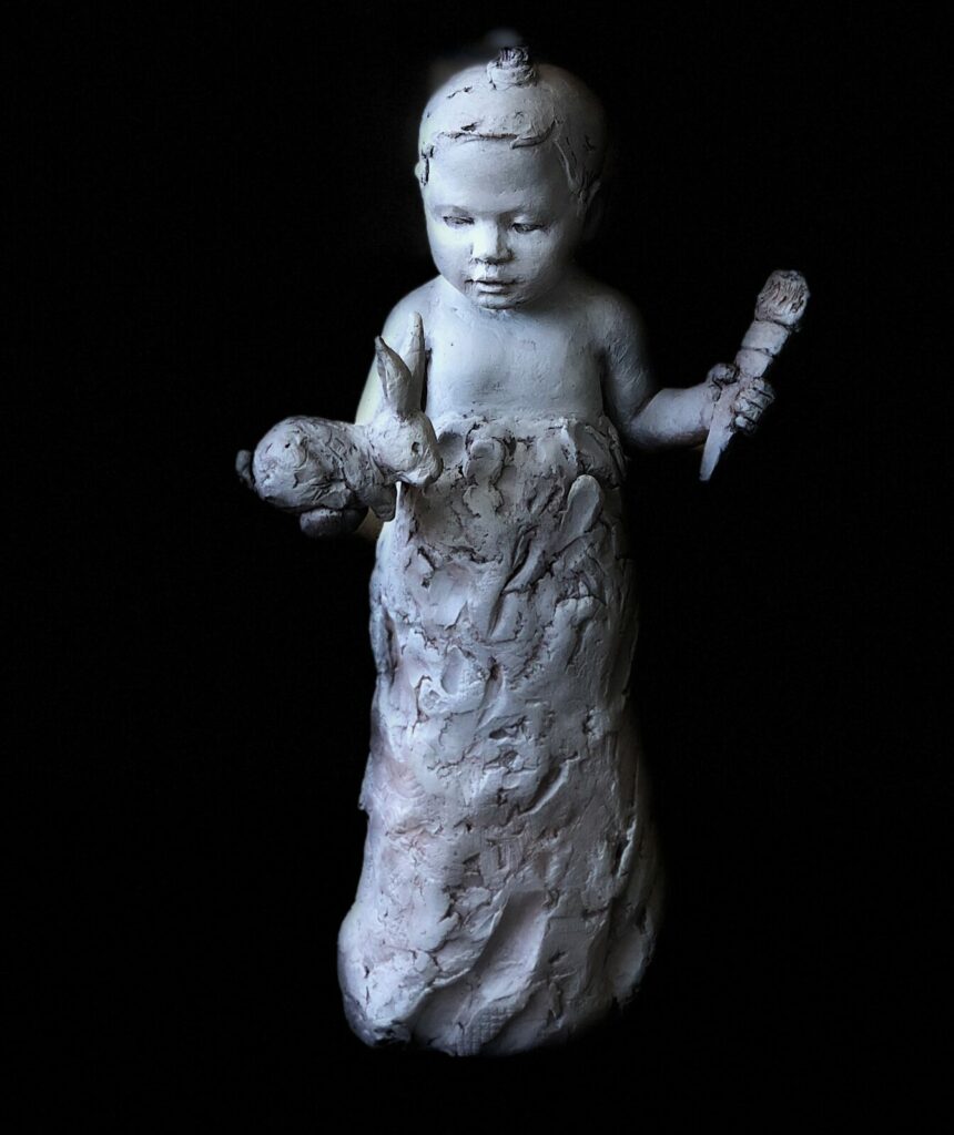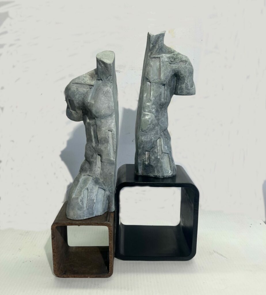 A pivotal moment in her practice is embodied in the work Immigrant, a synthesis of her artistic universe. This life-sized figurative sculpture transcends clichés: a woman, unsteady in her stance, marked by accumulated scars of displacement. Molded directly from the artist’s own body, it becomes a full-scale self-portrait carrying the deep wounds of exile.