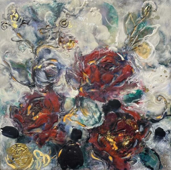 Œuvre originale. Encaustique (cire d’abeille) et feuilles d’or 24K sur bois.